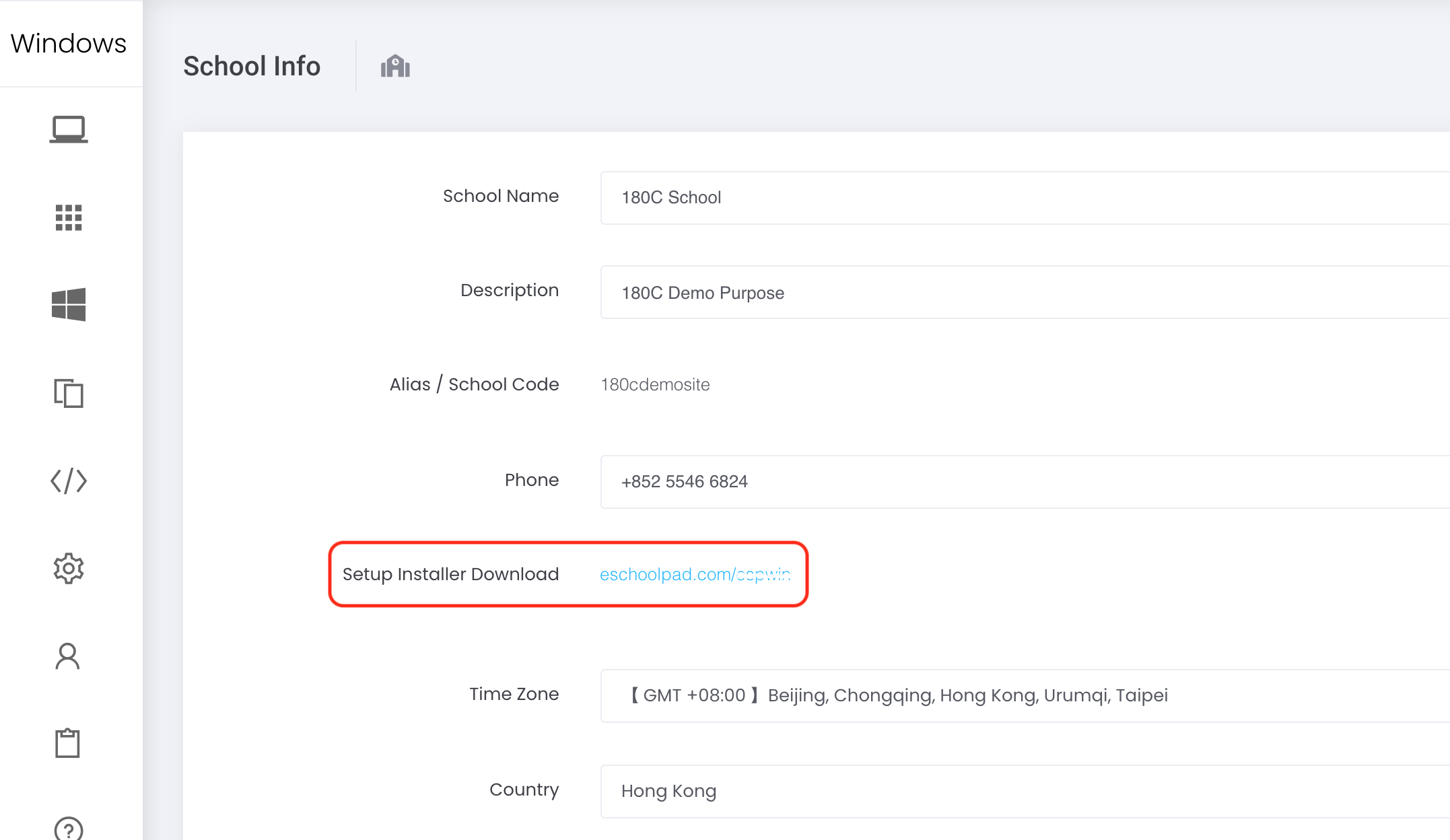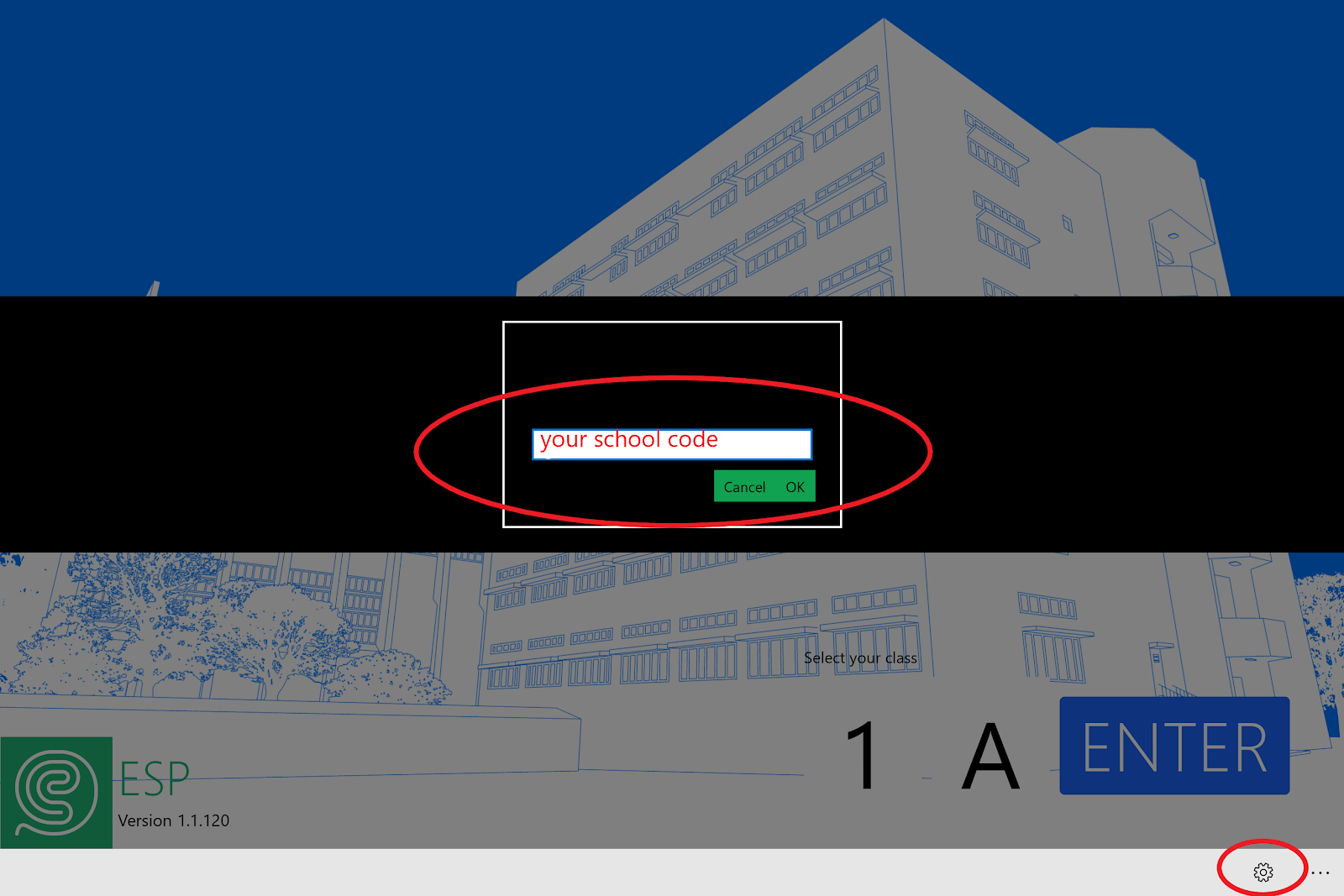 - On the ESP agent app, click the right bottom Setting icon to enter school alias/school code*